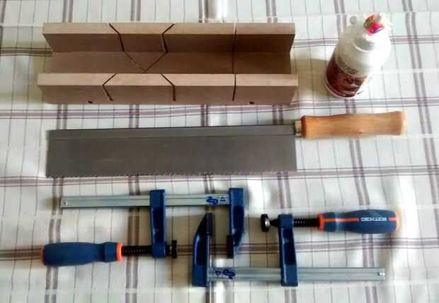 marco de madera4 piezas de maderaSierra de mesa (TechShop)Tronzadora (TechShop)Pegamento para maderaPistola de clavosUñas de gel:Restos de maderaAbrazadera (TechShop)Cinta (todo lo que tenía era cinta de embalaje)Martillo y punzónHice este truco de m