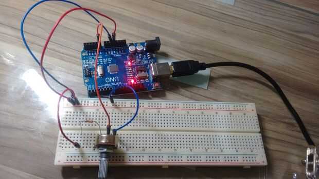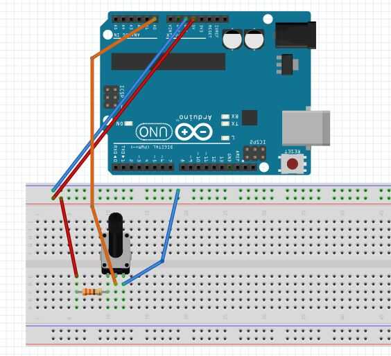 - Gomas o pino tierra hacer Arduino UNO à outra extremidade potenciômetro;