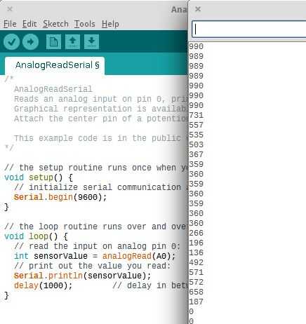 Agora, mexa no seletor potenciômetro e observar que un solicitados analógica realizada pelo pino A0 lo acompanha Arduino un seletor de posição atual.