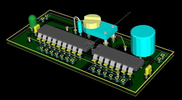 KiCad tiene una vista, que le permitirá 'volar' por su tablero de modelado de 3D brillante, instantánea. No cada componente se modela, pero es una gran visualización de lo que va a producir. Aquí se presentan dos capturas de pantalla.