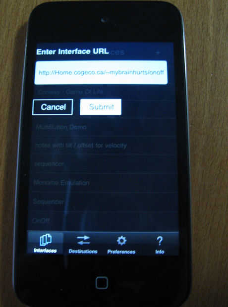 Este es el código fuente de la pantalla. Describe la forma, color y operación de los botones. Está escrito en JSON, un subconjunto de Javascript. Una vez que se carga en el iPod, no necesitas recargarlo.