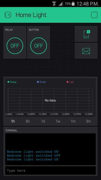 Felicidades, usted acaba de hacer una aplicación para smartphone. Puede compartir esta aplicación con quien. Hay un montón de otros widgets para elegir que puede incorporar y mostrar los datos sensoriales de cualquier sensor que haya agregado. También puede Agregar un gráfico de la historia (tercer bloque medio de pic) para supervisar su actividad de nightligh de novias caliente a largo plazo, pero en este instructable decido mantenerlo simple. Te recomiendo agregar la aplicación de la notificación, éste automáticamente le enviaremos una notificación si el dispositivo fuera de línea, va muy bien para probar pero también muchas aplicaciones del mundo real (tu novia descubrió su luz mal control de la magia y lo desconectado. NOOOOO!!!!!!). La aplicación de correo electrónico vista en foto adjunta le permite enviar mensajes de correo electrónico a ti mismo y a otros cuando se desencadena un evento. Ir a sus blynk ejemplos para ver cómo funciona y solo copia pega en el sketch de arduino si quieres utilizarlo