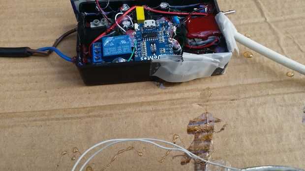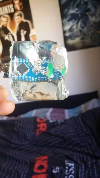 Una buena práctica al hacer electrónica como esta en una caja cerrada es "olla". Encapsulamiento significa sumergirse electrónica en un plástico de endurecimiento rápido o pegamento para que todo se queda en su lugar durante décadas. Decido usar epoxi transparente para hacer esto. Esto funciona realmente bien y hace su electrónica impermeable y a prueba de choques. Fui para epoxi transparente porque los resultados finales puede mirar realmente increible, Echale un vistazo esta otra imagen de un arduino nano reloj de alarma con zumbador y el motor vibrador que hice y en maceta en un redbull vacía puede. Parece enfermo. Sin embargo no puedo recomendar epoxi. Me dio realmente dolor de garganta y un dolor de cabeza a pesar de que todo lo que fuera hice, y es muy desordenado trabajar con. Estos días tienden a llenar mis cajas de electrónica con pegamento caliente de una pistola de pegamento (me gusta color pegamento caliente, sólo porque parece más fresco y más ordenado). Es más barato y no puede dañar su salud de manera indescriptible (te atreves a los aficionados a leer las advertencias que vienen con una botella de epoxy). Después de todo tenemos que mantener un buen funcionamiento cuerpo si estamos para marcar y mantener nuestra girlfiends caliente! ADVERTENCIA: cuando el encapsulamiento, no sumerja el conector usb, o usted no será capaz de programar en el futuro. (A menos que esté ok con eso, luego pegue ese cierre de bebé!). También asegúrese de que no están pegados el pulsador e interruptor pegado.