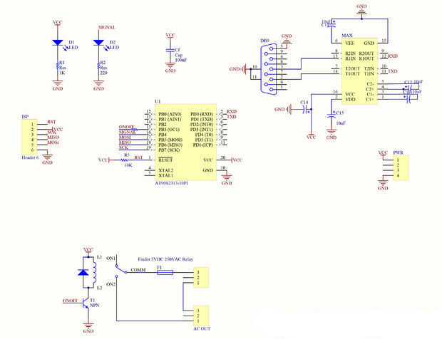 -> aislamiento óptico o a la fuente de alimentación separada para el microcontrolador y el relé de