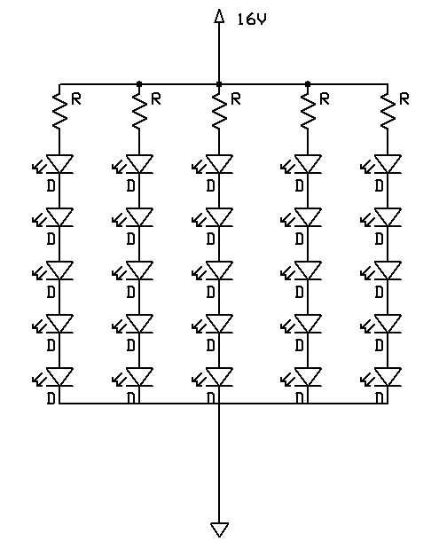 Ahora la manera más eficiente para conectar los leds fue en un arreglo paralelo de serie como se muestra en la tercera foto.