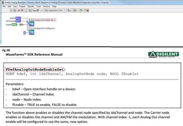 Entender correctamente cómo funciones de este proyecto, es importante entender el SDK de formas de onda. Normalmente el descubrimiento análogo es controlado a través del paquete de software libre de formas de onda. Formas de onda también viene con un kit de desarrollo de código abierto. Este SDK te da acceso a una biblioteca de C/C++ API permitiendo que cualquiera pueda escribir su propia interfaz de software para el descubrimiento de la analógica. Un resumen de todas las funciones disponibles en la API se puede encontrar en el Manual de referencia de formas de onda.