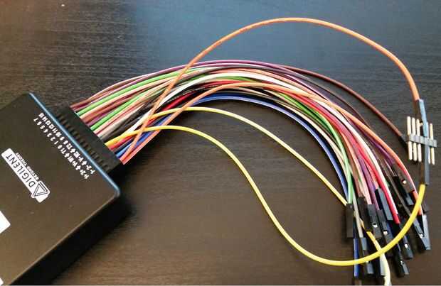 Si desea ver la forma de onda generado en el panel de alcance, usted debe con alambre la forma de onda una analógica analógica y salida entrada pins (ver imagen de arriba). Para detalles de pin consulte el pinout del descubrimiento análogo.