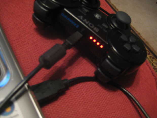 El ordenador debería reconocer que el controlador está ahí (hacer ruido) y el controlador debe ser rojo.