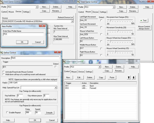 Una vez instalado, asegúrese de que el controlador está conectado y crear un nuevo perfil con el controlador de PS3, seleccionado como el dispositivo.