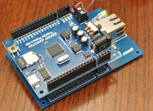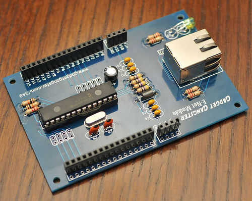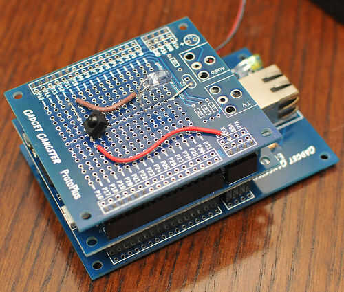 Probablemente puede construir todo esto en un protoboard o protoboard (excepto el jack RJ45), pero podría obtener bastante incómodo y fuera de lugar para su gabinete de la TV. Te sugiero usar un tablero personalizado.
