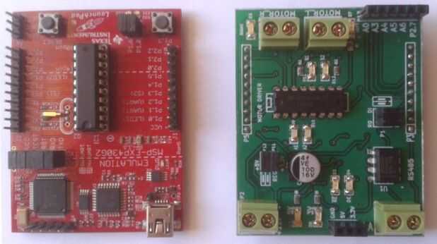 2) chip L293D que contiene MSP430 Motor Control Booster Pack y MAX485. Contiene el paquete del aumentador de presión construido en regulador de potencia y LEDs para indicar el Motor Control Direction.Tho está disponible en línea en Nuestra tienda en ebay o sitio web.