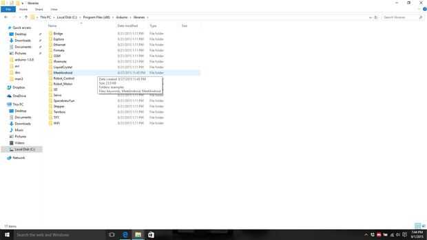 - Navegue hasta C:\Program Files (x86) \Arduino\libraries y pegar en la MeetAndroid. Si hicieron todo correctamente debería verse como la primera foto.