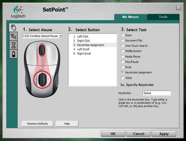 Bajo "3. Seleccione la tarea,"elegir"Asignación de teclado." También puede seleccionar "Play/Pause", pero esto no funciona para todos los jugadores de los medios de comunicación.