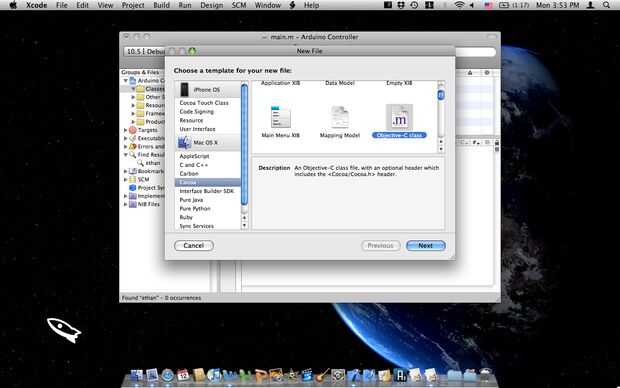 6) Seleccione la opción clase Objective-C de la opción de clases en la sección de Mac OS X