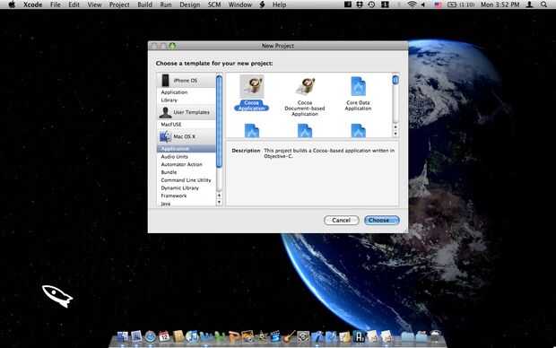 3) Seleccione "aplicación Cocoa' debajo de"Mac OS X -> aplicaciones"prensa siguiente