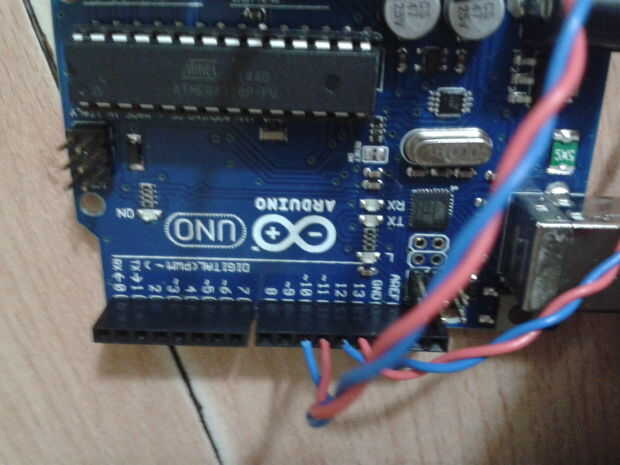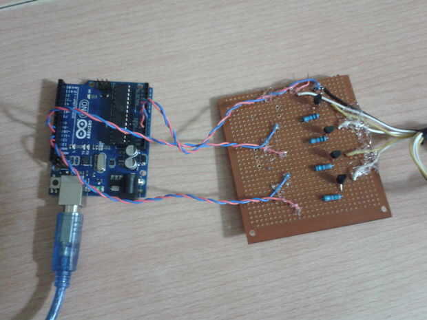 Soldar el circuito con los cables del transmisor (alambres de puente) y conectarlo al Arduino. Ahora estás listo para escribir el código de Arduino.