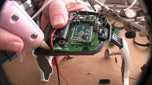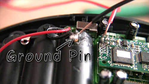 - Suelde un segundo cable a tierra terminal en la caja portapilas.