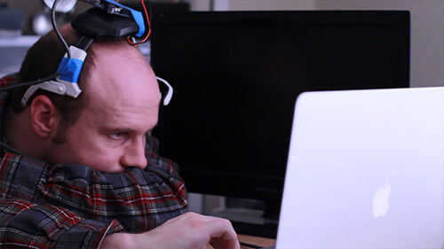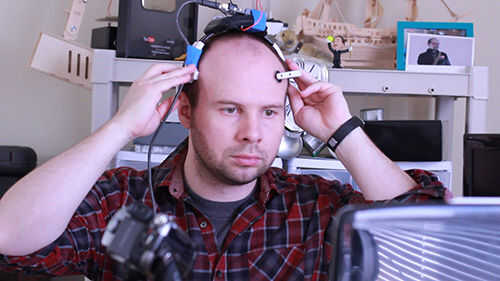 El último paso es conectar nuestros auriculares de EEG para el Arduino y editar el Arduino de código que envía un comando de teclado cada vez nuestros datos del cerebro alcanza un valor específico. Podemos hacerlo abriendo nuestro código Arduino tutorial Casera mente Control TV remoto y quitar todas las referencias del código a los IR LED y comandos y luego reemplazarlos con los nuevos comandos de teclado. El código final debe verse algo similar a esto: