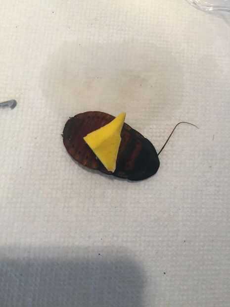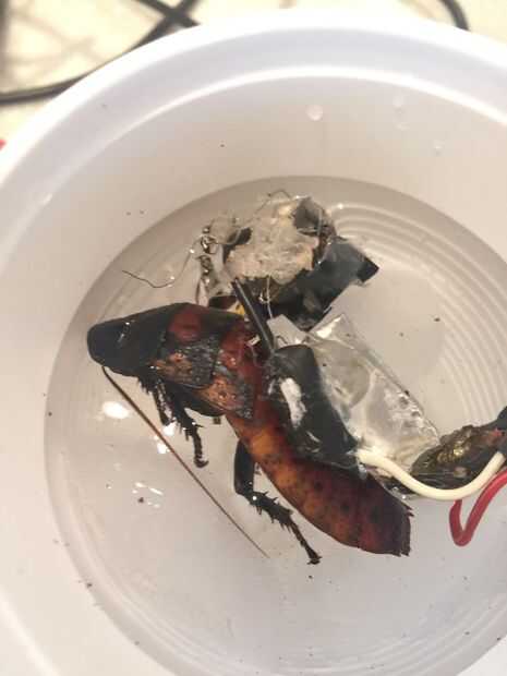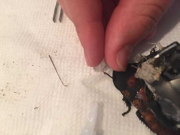 (esto anestesia la cucaracha) durante aproximadamente 2 minutos o hasta que haya poca o ninguna reacción al movimiento. Después de pone la cucaracha en la toalla de papel ligeramente la parte superior del tórax de la cucaracha (se trata de una sustancia menos nerviosa al igual que sus uñas y pelo) de la arena y con su pegamento no tóxico, pegue la mochila para el área lijada. A continuación, ajuste las antenas hasta unos 2-3 cm. Después de eso, ligeramente Inserte el cable de 1/4 cm en uno de la antena cortada (que es hueco) luego aplicar algunos de pegamento sobre el alambre y empujar el otro 1/4 cm en la antena, hacer lo mismo con la otra antena. Casi ahí! Antes de continuar Asegúrese de que la cucaracha es todavía completamente anestesiado, si no lo vuelve suavemente en el agua de hielo poner. Introduzca con cuidado el alfiler en el lado del tórax de la cucaracha. A continuación, inserte el cable de tierra 1/4 cm la pequeña perforación que hizo y aplique una pequeña cantidad de pegamento sobre el alambre e inserte otro 1/4 en el orificio. Asegúrese de que los cables están lejos de las piernas porque pueden sacar los cables. Cuando haya terminado deje lo recupera durante la noche en un terrario separado. Una vez hayas hecho la cirugía en un par de veces que lo pone más fácil. También, recuerde limpiar la mesa y tire el agua con hielo para mantener a su mamá feliz.