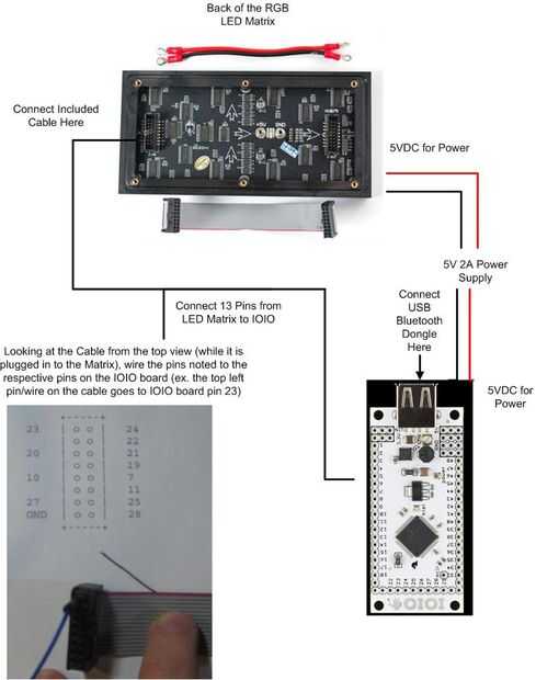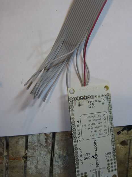 Si se trata de una instalación permanente, puede cortar el otro extremo del cable de matriz de LED incluido (este cable se envía junto con la matriz de LED de 16 x 32 de Adafruit) y soldar directamente a los pines en el IOIO.