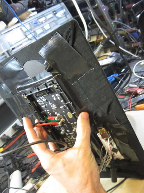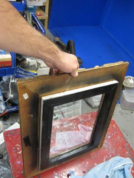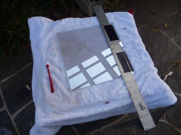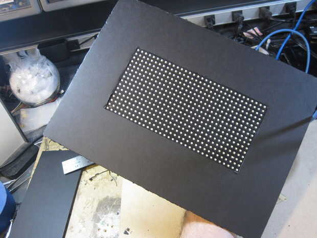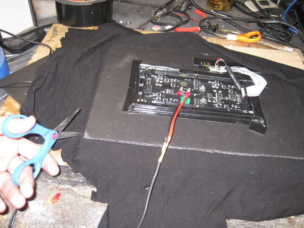 Cubren el frente de la Junta de núcleo matriz y espuma con la camiseta negra. Esto es necesario para el efecto del espejo 2-way. Si hay cualquier blanco expuesto, el efecto de espejo se arruinará.