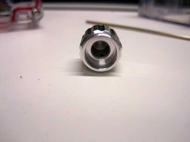- Puede que necesite recortar la longitud del eje del potenciómetro para que todo se ajuste bien. Usé una dremel con un disco abrasivo para esto. Un hack vio funciona bien, también. Tendrás más éxito con la sierra para metales si tiene un tornillo de banco para sujetar la parte todavía.