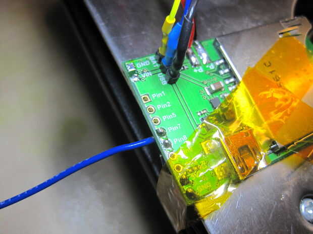 - El otro extremo del cable azul conectado en el paso 1 al Pin 7 en el tablero de arranque de imp de la soldadura. Una vez más, tenemos aquí algunas fotos para que usted compruebe su trabajo.