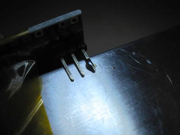- Si cambia el amarillo y negro, no te preocupes. Que todavía funciona exactamente igual. Calentar el pin y alambre hasta la soldadura en ambos comienza a fluir juntos. Quitar el calor, pero sujetan los pernos hasta que la soldadura se enfríe. Repetir para cada uno de los tres pernos.