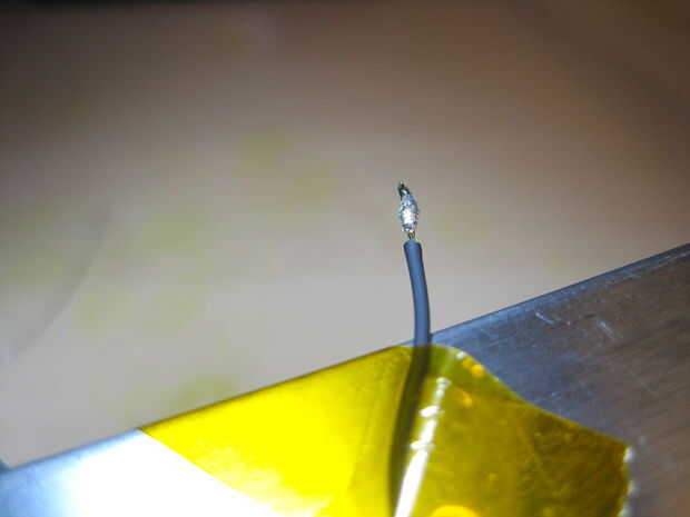 - Cinta adhesiva los extremos del cable hacia abajo y aplicar una pequeña soldadura hasta el final de cada cable, utilizando la misma técnica que utilizamos en el paso 3.