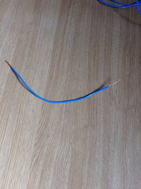 Corte dois pedaços de fio revestido: um de comprimento suficiente para ligar os dois pedaços de alumínio das Parts cabo de vassoura, e outro gomas o alumínio do meio e o da ponta cabo (imagem acima).