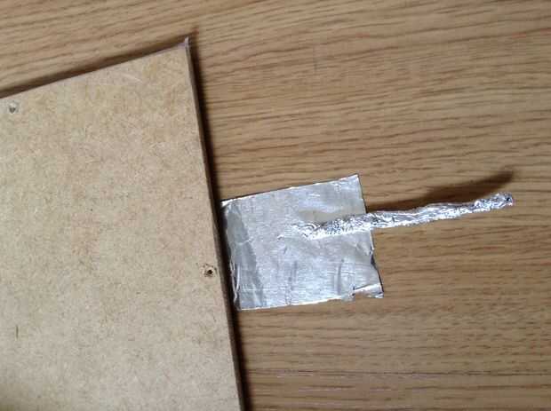 Fazer para una outra superfície irá embaixo da placa, basta pegar um pedaço pequeno de papel alumínio e outro pedaço amassado e erfi-os.