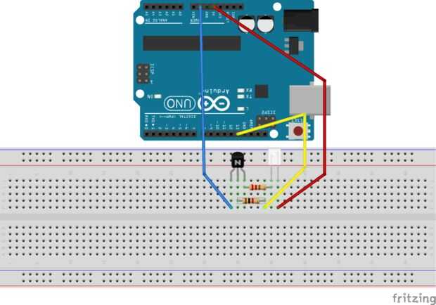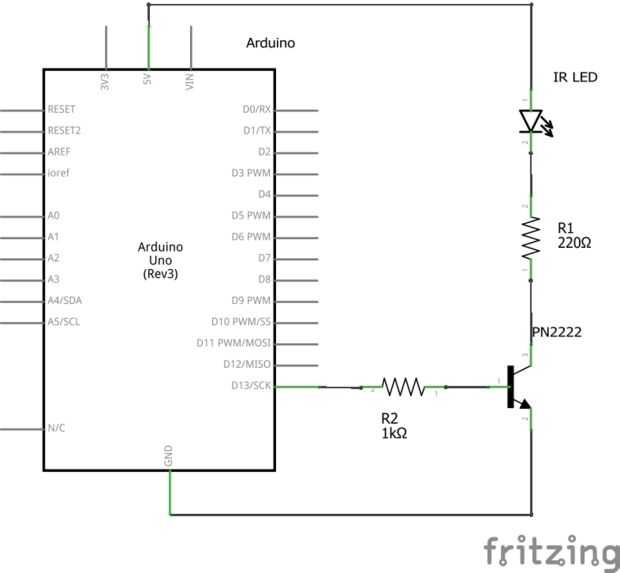 También puede enviar las señales de infrarrojos utilizando Arduino en lugar de utilizar un mando a distancia. He modificado el código de ladyada para que puedan enviar código para cualquier botón simplemente proporcionando el valor decodificado. Este código le enviará la señal IR de reset y luego después de cada minuto.