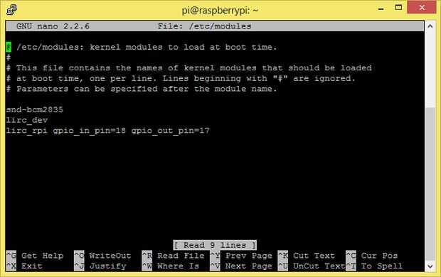 Nota: buda.suyasa descubrió que para trabajar LIRC en frambuesa Pi 2, necesitará editar usando /boot/config.txt: