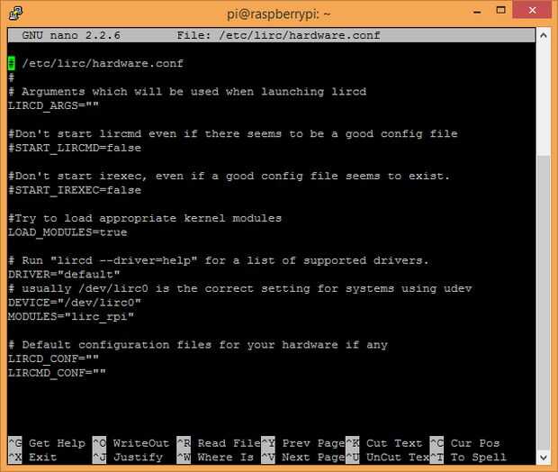 Ahora tenemos que editar el archivo de configuración de hardware LIRC. Abrir con: