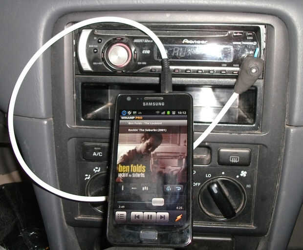 http://www.wisebread.com/Build-a-cable-to-control-Your-Android-Phone-while-you-Drive