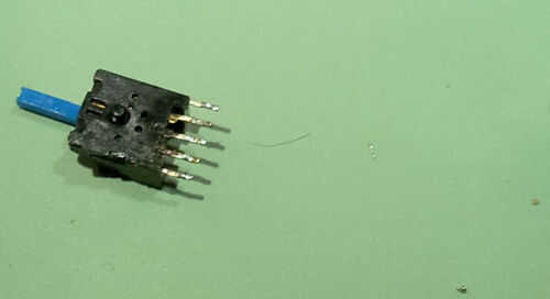 Para saltar a la pista siguiente o anterior, que estoy usando un interruptor el cual reposa en posición abierta (no haciendo un circuito), y que sólo está conectado a los pines 2, 3 y 4. Cuando empuja a la izquierda se conecta los pines 1, 2, 3 y 4, y cuando empuja a la derecha se conecta los pins 2, 3, 4 y 5. Ver imagen 1 para clarificación.