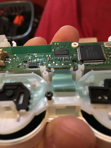 El tablero superior se sujeta con un tornillo situado entre los dos soportes del stick analógico.