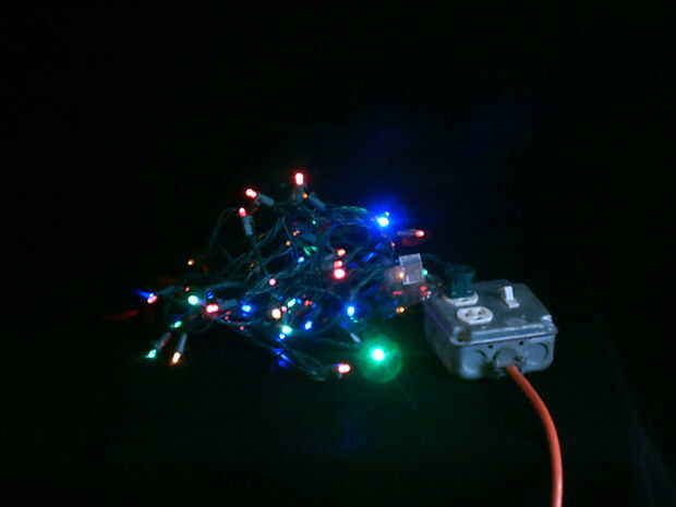 Convénzase usted mismo con un inversor de 12V a AC línea de cadenas luz LED en lugar de cableado para 12V.
