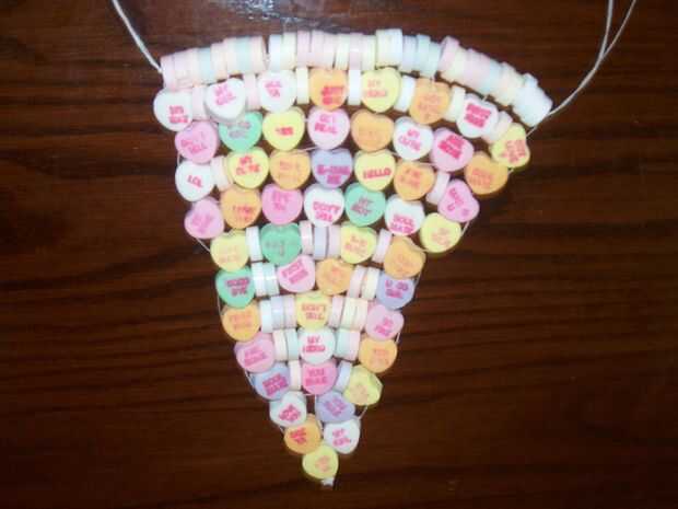 También Perfore unos rollos de caramelos Smarties a través del centro. Estos actuarán como "separadores" entre los corazones de la conversación.