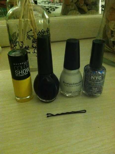Obviamente necesitas esmalte de uñas. Usted puede utilizar cualquier tipo desea que apenas estoy utilizando amarillo. Seguro vas a necesitar blanco y negro. Usted también necesitará un quitaesmalte de uñas o un cepillo del arte del clavo. Si no tienes o bien puede utilizar una horquilla para dibujar en ella. Esto es opcional, pero removedor de esmalte de uñas es bueno que si te equivocas. Otros detalles son hasta usted. Podría utilizar destellos.