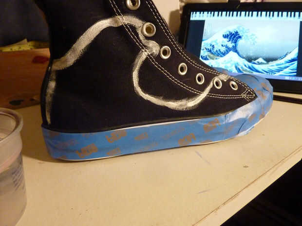 Ahora es el momento para pintar! Delinear el diseño de sus zapatillas con el
