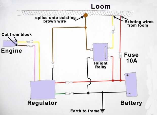 Necesita empalmar un cable marrón que forma parte del telar (Asegúrese de que es luz marrón, marrón oscuro - marrón oscuro es un indicador y es fácil confundirlos - puede utilizar un multímetro para comprobar si es necesario, se debe tomar 12v cable marrón todo el tiempo).