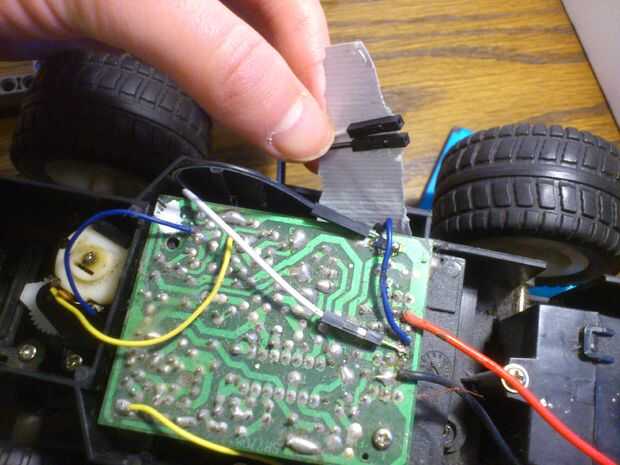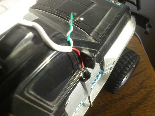 - Abrir el coche RC, encontrar los cables de entrada y de la soldadura de los cables nuevo allí.