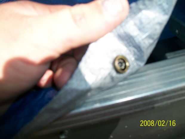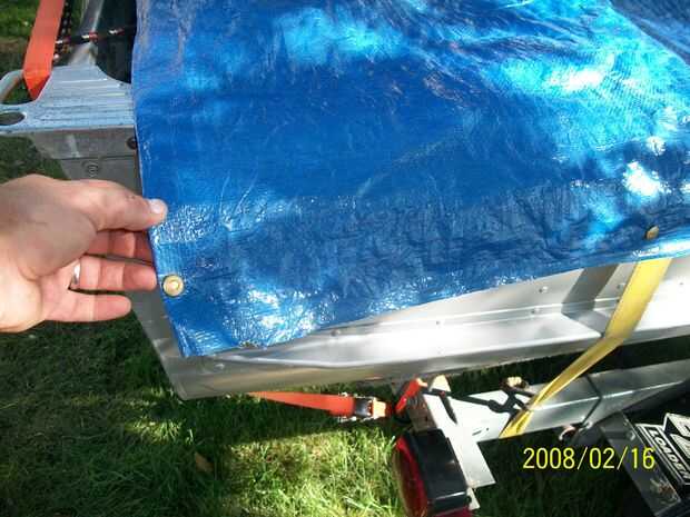 He puesto las lonas en la parte superior del barco y comprometidos por 4". Fui cuidadosamente alrededor de donde había ya copias instantáneas en el barco y marcado hacia fuera donde los broches de presión dónde ir en la lona a uno. Luego instalé broches de presión alrededor del perímetro del barco en las 2 lonas que unieron a hacer una lona grande. Luego usé un cuchillo del exacto para cortar el exceso justo debajo entonces se encaja a presión. Ahora es una cubierta cabida para el barco que normalmente costaría alrededor $200-300 que hice por alrededor de $20.00.