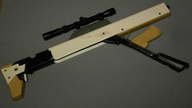 Todos los componentes de reemplazo son fabricados de álamo, acero o PVC y celebró junto con epoxy o tornillos... Además de un imán de tierra rara solo y un poquito de aluminio y pegamento caliente para el gatillo. (Total costo de materiales usados era alrededor de 10$.)