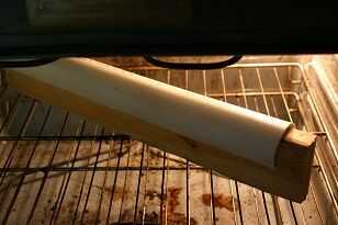 El tubo de PVC a lo largo de la raja, calentar en el horno para un poco (3-5 minutos en tal vez 300 grados F), deslice hacia la parte inferior de nuestro golpe, metes en el horno para un poco más (5-10 minutos a 325 * F parecía funcionar) y rápidamente asumir su muerte y la fuerza en la cavidad con el punzón. Ahora apriete vicio un poco (apretando los tableros laterales un poco), siente un peso sobre el golpe y vaya hacer otra cosa mientras que todo se enfríe durante 10 a 30 minutos.