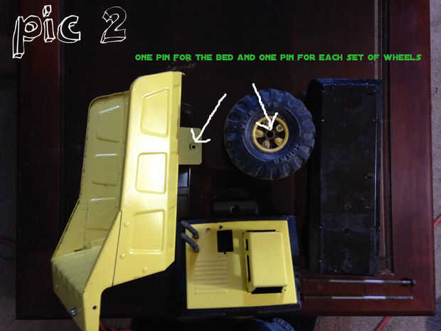 1) quitar pasadores de acero que conectan las ruedas y el camión cama con buena herramienta o instrumento de su elección como se muestra en la figura 2
