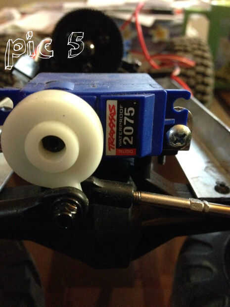 Fui con dos servos impermeables, una impermeable alta par STD Metal Digital Servo de en frente y un Servo impermeable Traxxas 2075 (Revo. Cumbre, E-maxx, barra etc... En la parte posterior que se muestra en la ilustración 4-5. Siento que las ruedas son una preferencia, algunos como el suave y amplio estrecho duro... etc. digo explorar su propio.