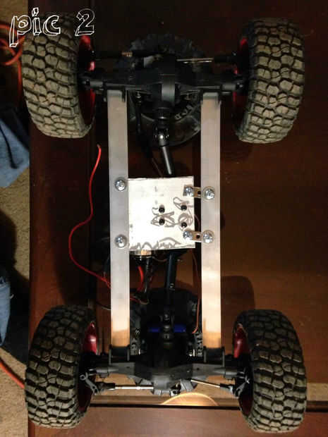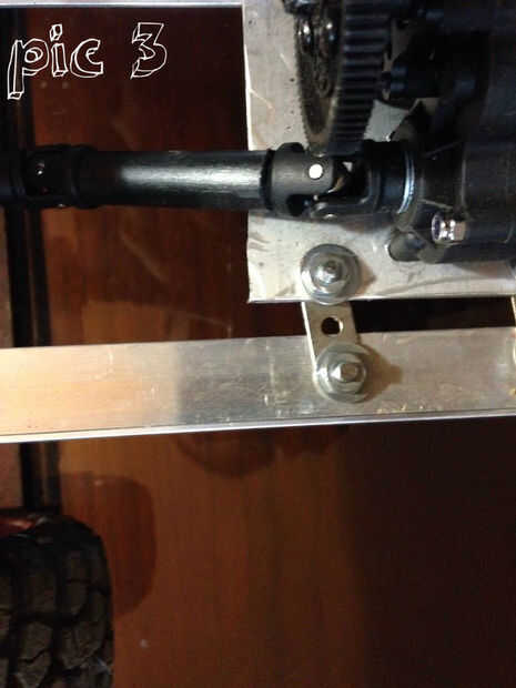 Cierren la sección media para la ayuda con a la izquierda sobre el trozo de aluminio con aproximadamente 3 1/2 x 3 "como visto en el cuadro 2. Tengo doble el soporte como un montaje de la transmisión para la Axial AXI30487 bloqueada la transmisión para el Scorpion AX10 también se encuentra en Amazon.com (Nota: "la transmisión se monta más adecuado para usted. Les recomiendo usar loctite un poco). Junto con la transmisión, es un AxialAX24007 55T Motor eléctrico, engranaje de estímulo de AX30672 Axial 48DP 87T, AX30569 Axial P 48 14T acero piñón, todos se encuentran en Amazon.com.