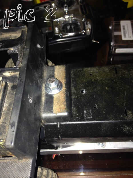 Ahora que su chasis está listo, colocar el cuerpo debe ser una brisa. Simplemente deslice el cuerpo en la parte superior con el ángulo en el exterior como se muestra en el cuadro 1. (Nota: no coloque el cuerpo del carro en el chasis hasta el final) Instale el cab con el perno de su elección, puede dejar en el agujero original o hacer uno nuevo dependiendo de sus necesidades, como en la figura 2.